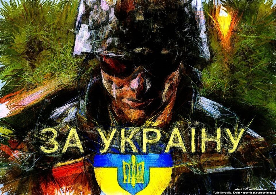 Боєць 92-ї бригади Нацгвардії Юрій Нерослік «у вільний від війни час» малює патріотичні плакати